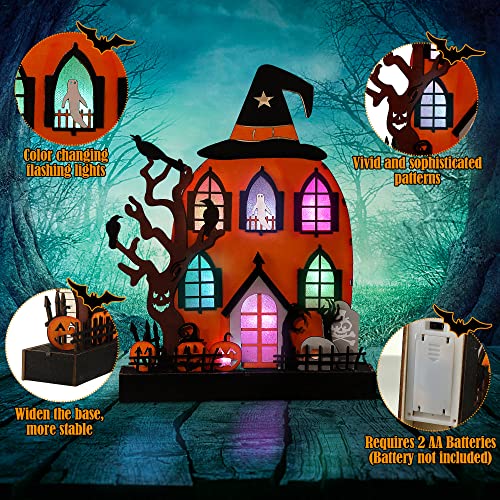 - Lighted Halloween Decor: the Halloween pumpkin house has built in colored light strings that reflect colorful lights from the windows of the haunted house, along with the changing flashing patterns, making your Halloween night even more mysterious and fun