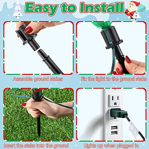 - Connectable Pathway Lights: the path light is 18 feet long and contains 10 bubble bulbs; The distance between each Christmas lights stick is 1.64 feet; It can be connected to multiple light strings, and can light up to 30 bulbs at the same time with 1 power supply, expandable to a long length allow you to decorate your lighting area with the desired length