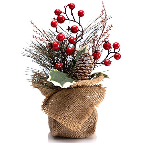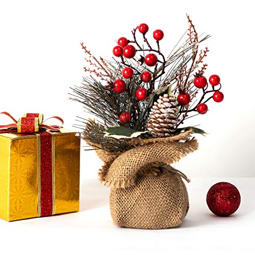 10-Inch Small Tabletop Christmas Tree with Red Berries