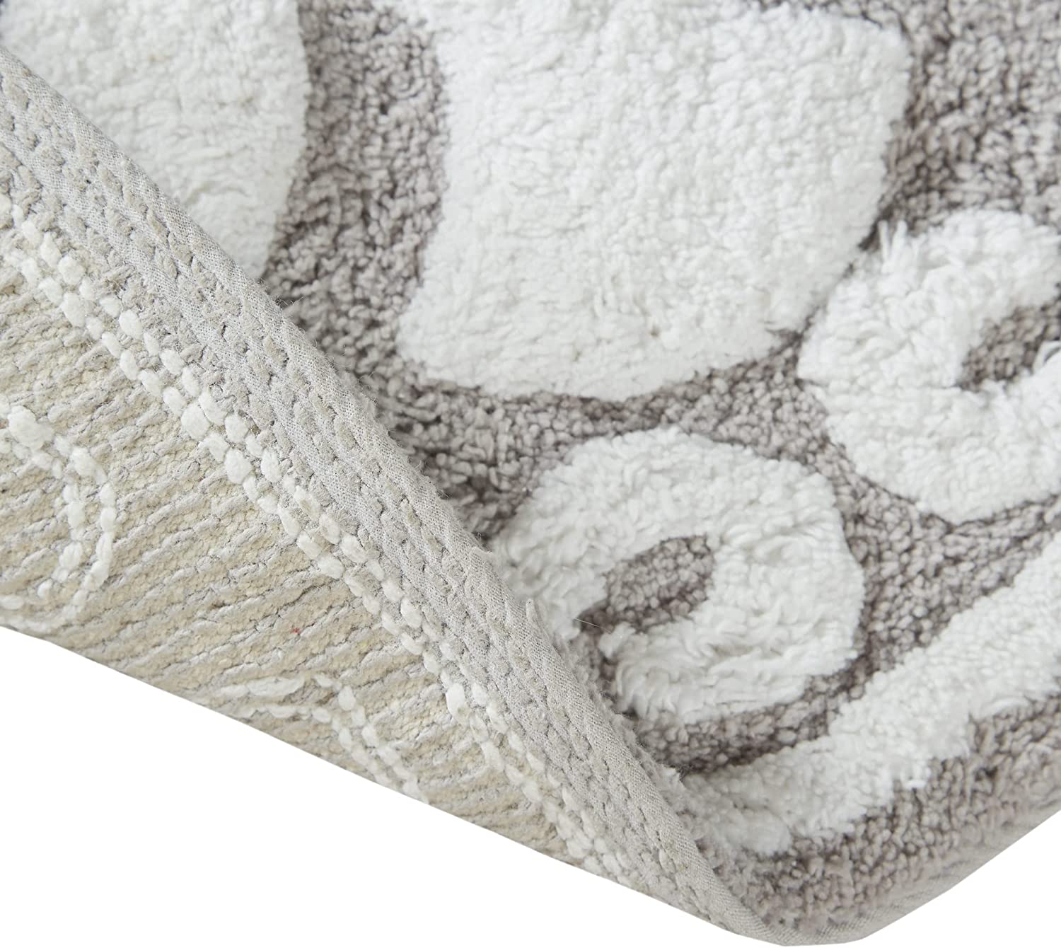 100% Cotton Tufted Bathroom Rugs Luxurious Plush Medallion Floral Pattern Bath Mat Absorbent, Quick Dry, Round 25", Taupe