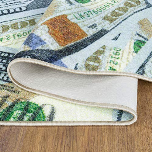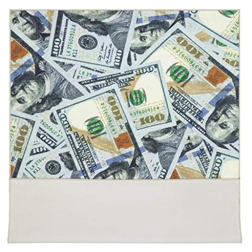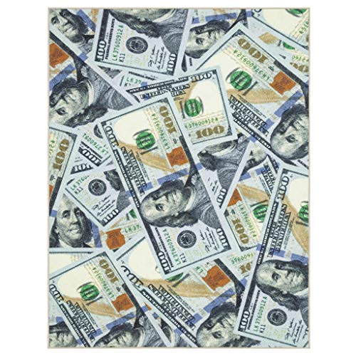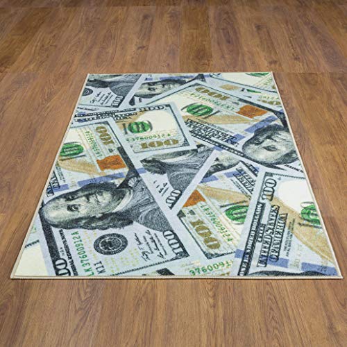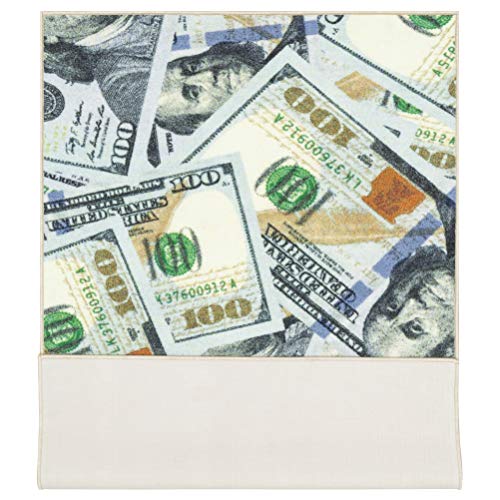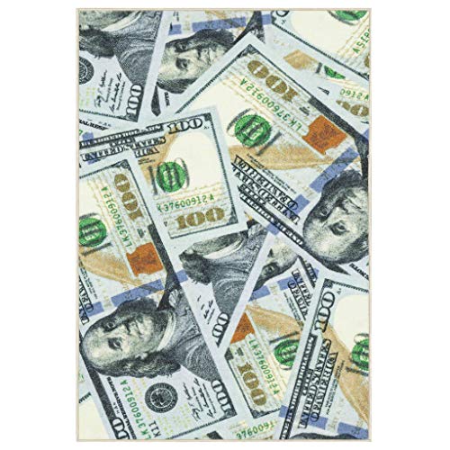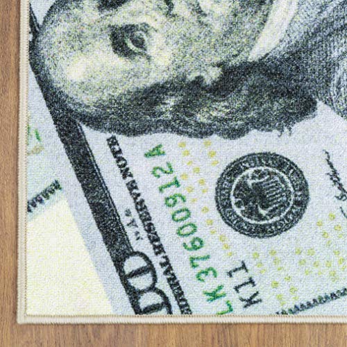 - A vibrant life size replica of the famous $100 dollar bill printed on a low pile rug