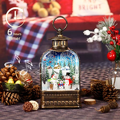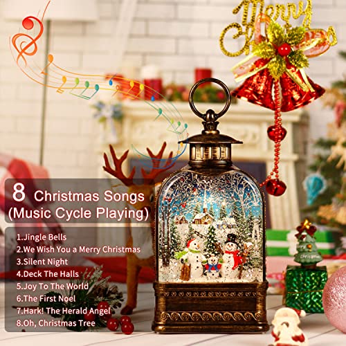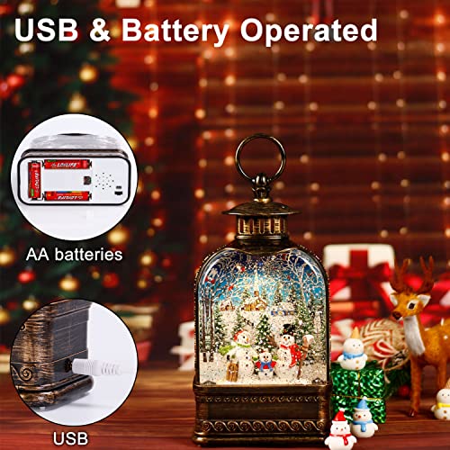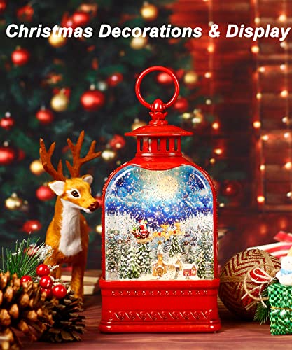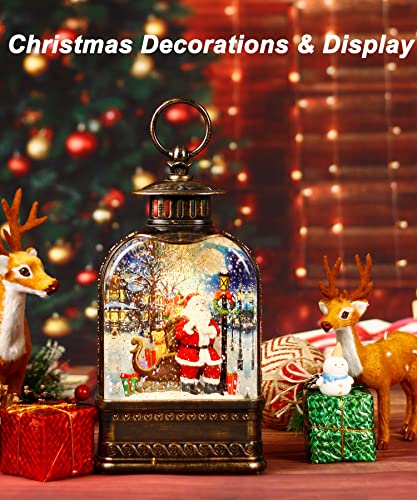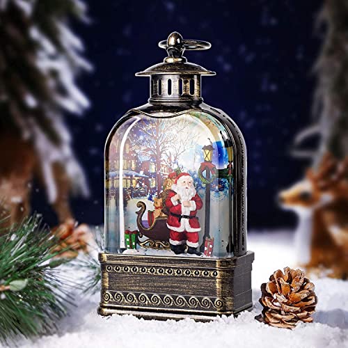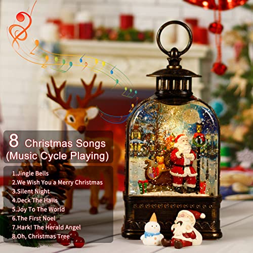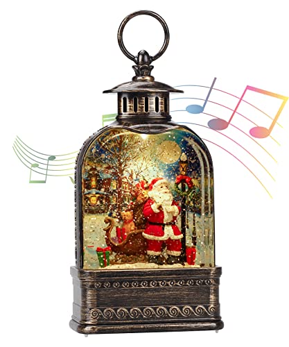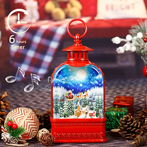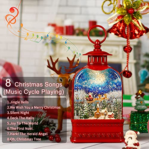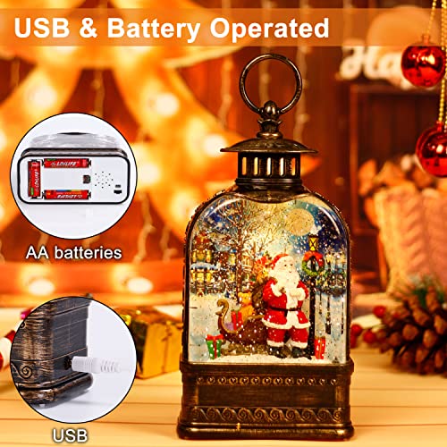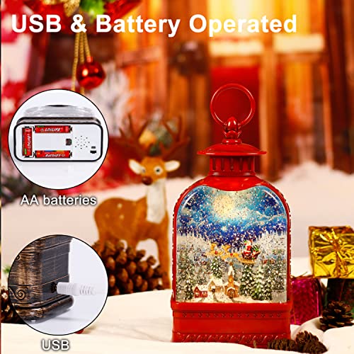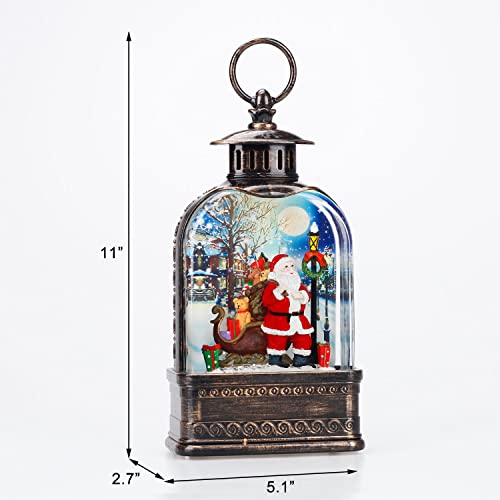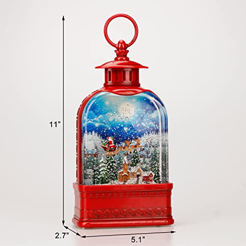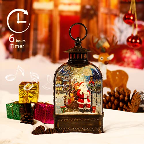Santa Lighted Christmas Snow Globe, 11" Musical Glittering Snow Globe Lantern with Timer, Christmas and Holiday Decor Battery Operated USB Powered