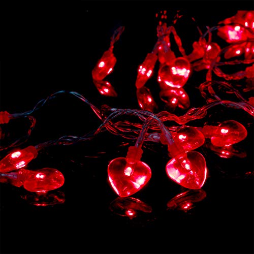 - COZY STRING LIGHTS -- The heart shaped lights have a warm soft red color when lite, which is perfect for setting a special mood at Valentine’s Day, Weddings, Anniversaries or Parties.