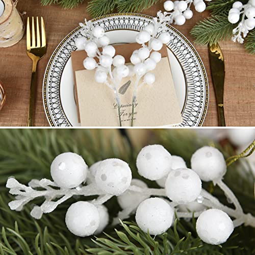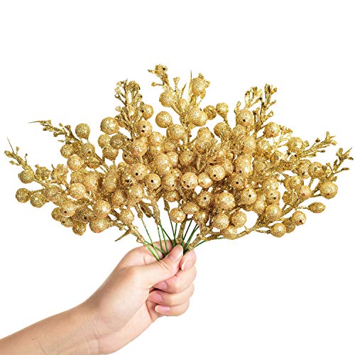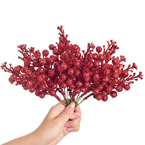 - Package includes 14 berry stems and each stem with 15 glitter berries approx. diameter 0.6in, stem length approx. 8in, Add a few of these into your Christmas floral arrangements, plain wreaths, swags, garlands or Christmas trees to give it dimension and to liven it up!