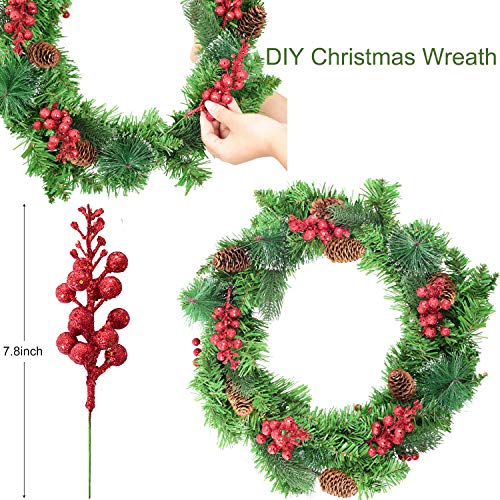 - 14Pcs individual glitter berries stem for Christmas tree and xmas wreath decorations, holiday, home, party, wedding Ornaments, These vivid red berry cuttings can be used as fillers for vases in your living room, garlands or ornaments on doors to add a festive atmosphere.
