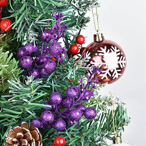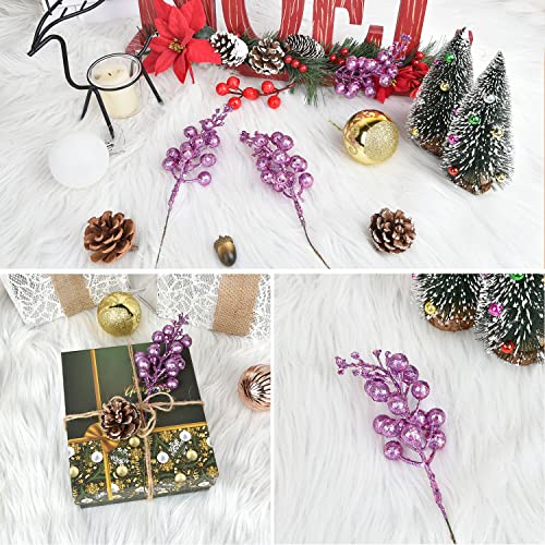14 Pack Christmas Glitter Berries Stems- 7.8Inch
