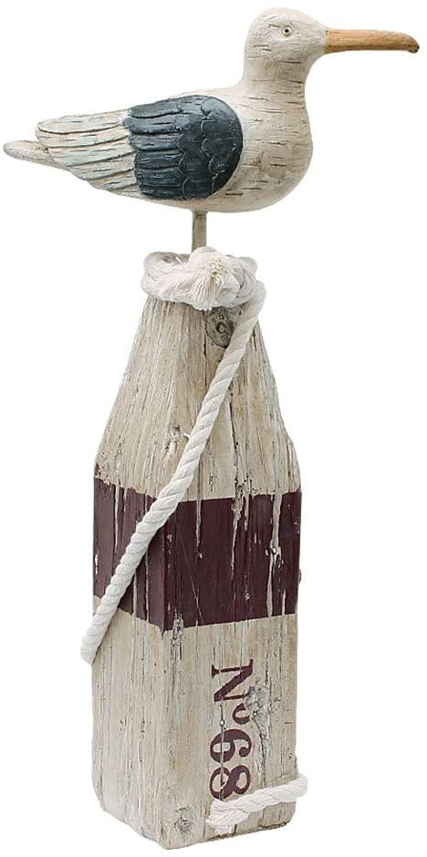 Seagull Decor - Features a seagull sits on a piling, adorable and realistic. Hand carved appearance works well with your other nautical or coastal decors Resin Seagull Statue - This sea bird statue measures 15.5*3.5*3.5", will be eye catching to place at home in your nautical themed room or garden Nautical Bird Decor Durable - This seagull home decor is made of high quality resin with well made details. Free standing, can be placed in kitchen, table top, anywhere you like. Perfect accent to your tropical theme Easy Assemble - This decorative seagull sculpture is easy to assemble. Just plug the stick under seagull to the piling.Great Gift Idea - Nice gift to families, friends, seagull lovers and nautical and beach style decor lovers. As a 'collector's' gift. A perfect choice for beach themed party or events Seagull Statue Decor Nautical Theme Sea Bird Sitting on a Pillar Hand Carved Seagull Figurine Beach Table Decor, Resin, 15.5" H (L)