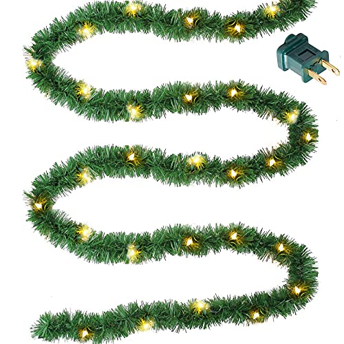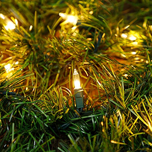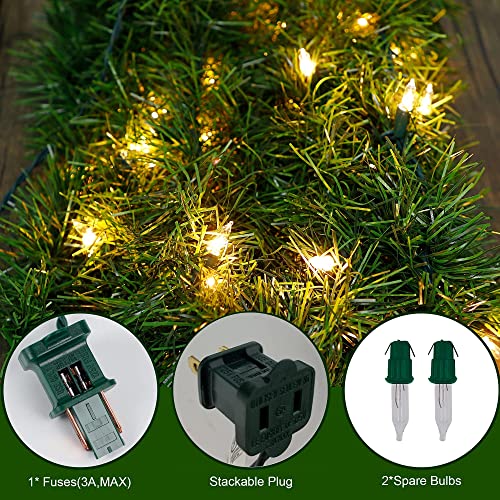- Lighted Christmas Green Garland: Christmas artificial pine garland with 35 count clear incandescent mini string lights, the length of the Christmas wreath and the string light are 15 feet long, and it can not be connectable. This soft lighted Christmas green wreath can be combined with a string of lights or worn alone.