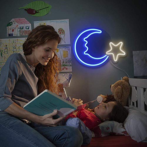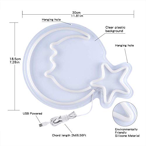 15" LED Moon Star Neon Light Wall Light Wall Decoration, USB Powered