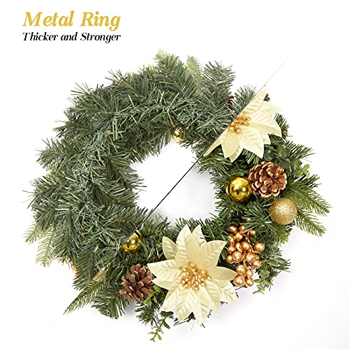 - [Classic Christmas Door Wreath]: Using the traditional gold holiday color scheme, this artificial Christmas wreath is the perfect Christmas decor for winter holiday.
