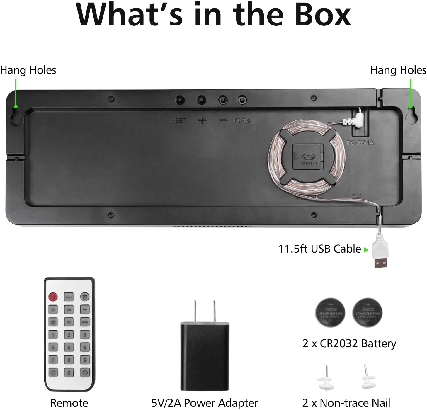 - HANDY REMOTE CONTROL - A Clock This Big Deserves its Own Controller! Adjust LED Brightness, Set Time, Set Alarm, or Set Timer. Note: If you can't find the remote control and USB cable, be sure to open the other end of the box to check.
