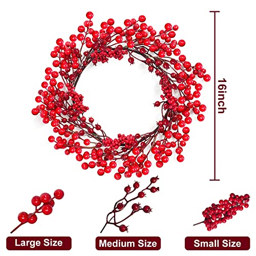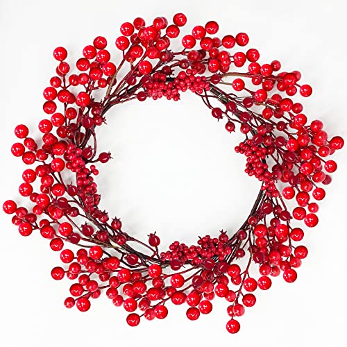 - [ 16 Inch Red Berry Christmas Door Wreath ] The 16 Inch artificial red berry Christmas Wreath for Front Door Decor. Crafted with PVC material and coated with bright colors. Durable and sturdy, not easy to crack and fade.