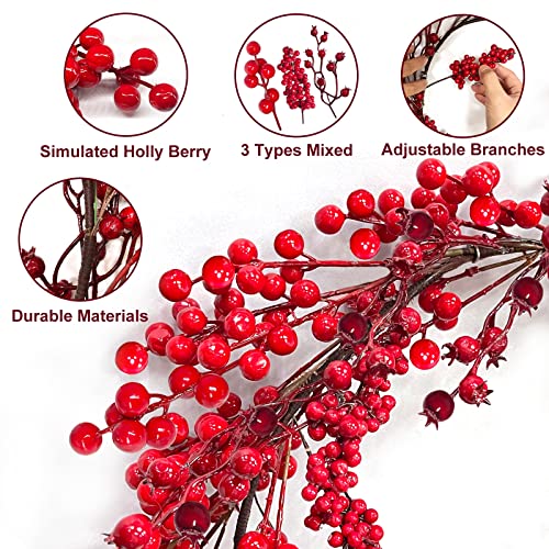 - [ 3 Different Sizes Red Berries ] Handcrafted with berries of 3 Different Sizes and various red shades on a thick natural wreath base. The overall look is very lively and full.