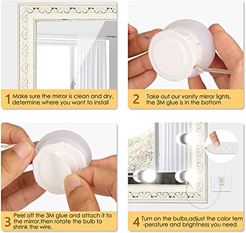 - DIY Fits Most Mirror - 17 ft mirror light kit in full length with 10 bulbs,extra wires can be hidden in the base by rotating the bulb shrink wire for the best DIY effect and keep your mirror neat.10 extra professional double-sided adhesive pads for easy replacement.