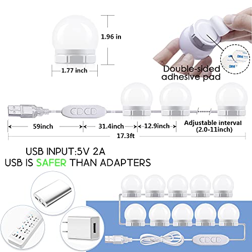 - USB Safe & Easy Installation - This LED string lights use USB low voltage operated power (5V 2A, Safer than Adapter). No holes drilling or No electrical wiring is required, just stick on firmly these led vanity lights to a wall, mirror, or mirror frame and you’re good to go!