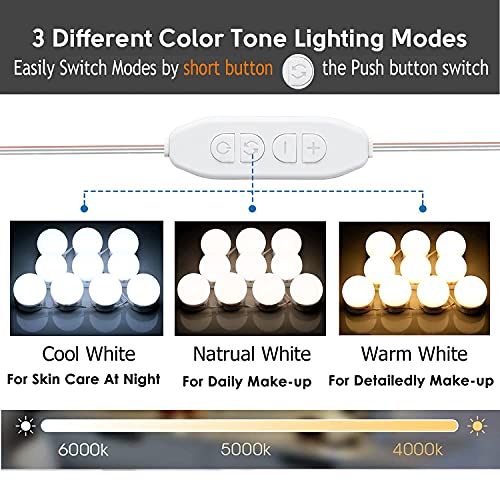 - Vanity Lights are Highly Durable - True beauty surely lasts a lifetime and so will your vanity led lights. The makeup lamp has 3 color temperature lighting modes and 10 levels of brightness. Meet your vanity lighting needs in different scenarios. Power-off memory function, no need to reset it every time you use it.
