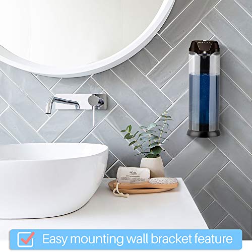- Attractive and Stylish High Quality brushed nickel and black finish with clear soap container; can be wall mounted or placed on a countertop.