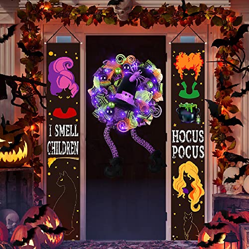- Haunted decor - Halloween witch wreath with lights hanging on the front door gives your home a Halloween touch and will bring to kids a horrible and interesting atmosphere to Halloween, kids will love it. This witch wreath will make a great addition to your Halloween Hocus Pocus party!
