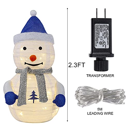 - Lighted Collapsible Christmas Snowman: Collapsible lighted Christmas snowman at 2.3FT high, perfect indoor and outdoor Christmas party supplies, brings stronger feeling of Christmas atmosphere and makes it big and attractive Christmas decorations around.