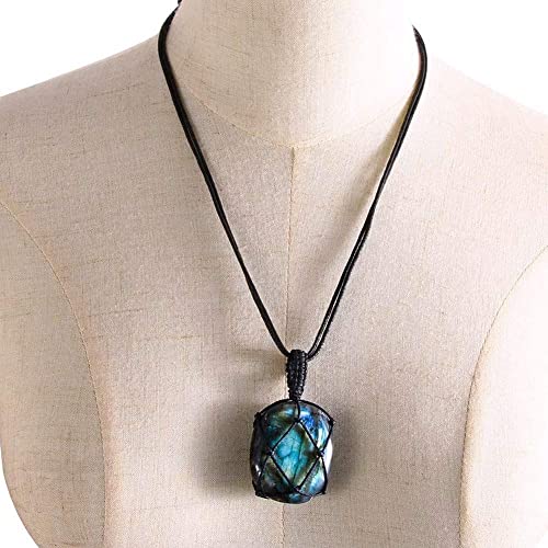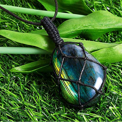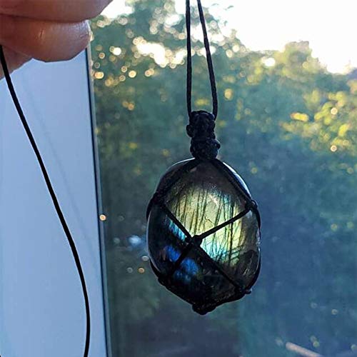 - ❤ Material: Moonlight labradorite. Braided macrame cord Surrounded - The rope adjustable. Hand-Knitted Irregular Crystal Chakra Pendant Durable and solid, will not fall.