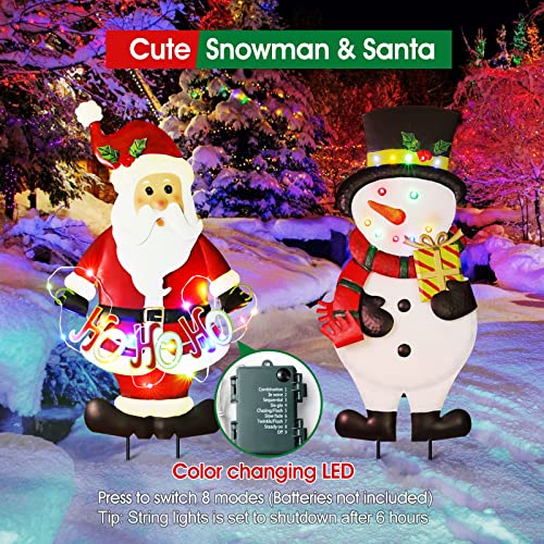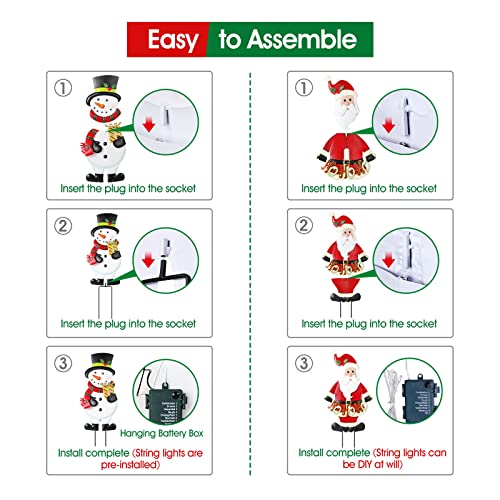- Colorful Christmas Garden Decor: The outdoor Christmas decorations come with 2 colorful string lights with 8 lighting modes.One string light is pre-installed on the snowman and the other can be used for DIY Santa to add a strong holiday atmosphere.Tip: The string lights have a 6-hour timer off setting. Turn on the switch and it will automatically light up at night.