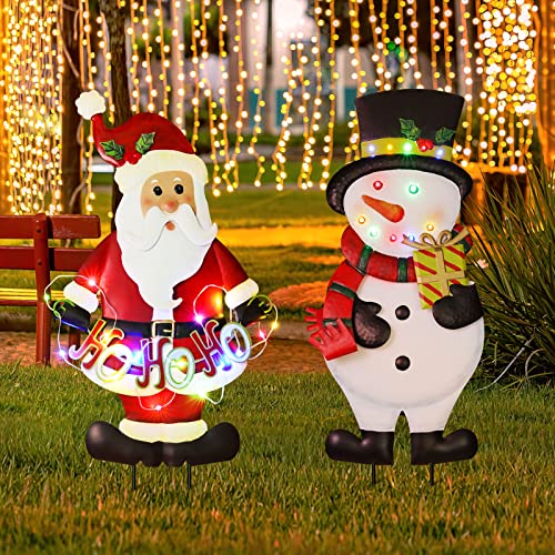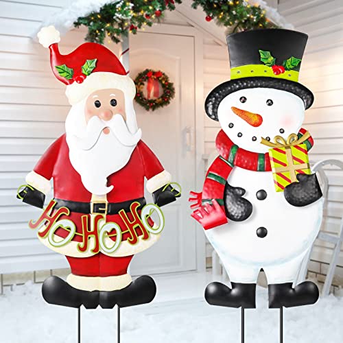 - High Quality Christmas Yard Decoration: The outdoor Christmas yard decors are made of premium thickened metal, bright and colorful hand-painted and finished with a rust-proof coating for years use.It's specifically designed to withstand extreme weather conditions. Perfect yard stakes for Christmas outdoor decoration.