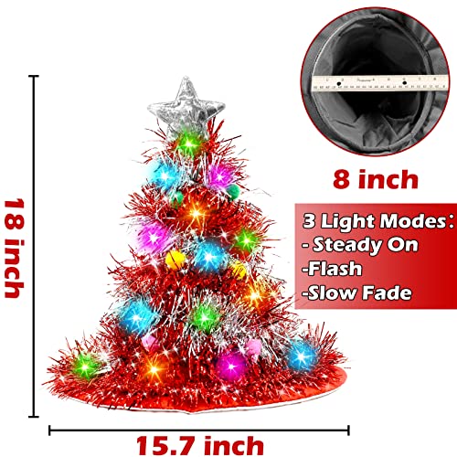 - [ 30 LED Colorful Lights & 3 Lighting Modes ] Each Christmas Tree Hat has built-in 30 LED colorful lights with 3 modes(fast flash, slow flash and steady on). Lighting colors: yellow, blue, red and green.
