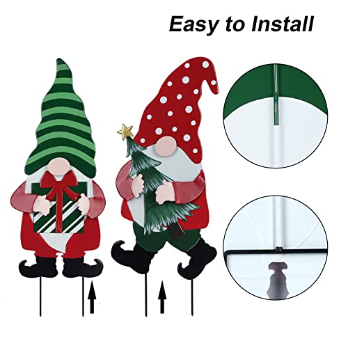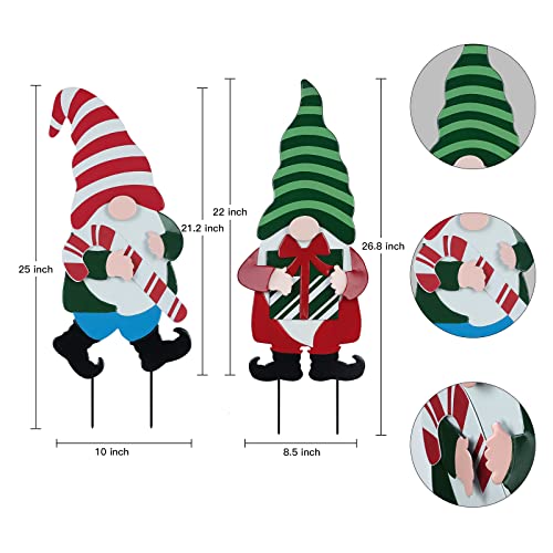 2 Pack Decorative Christmas Gnomes Garden Metal Stakes