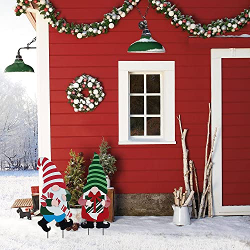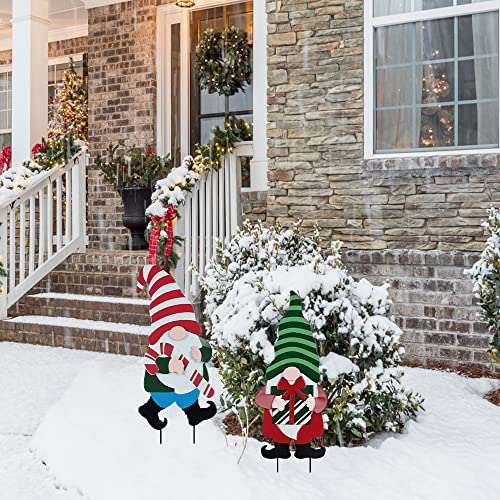 - đăOUTDOOR CHRISTMAS DECORATIONSăOur cute Christmas gnomes decorations are made with Christmas colors, one holding candy canes and another holding present in arm. Surface use 3D design make them looks more realistic and vivid, with these Christmas gnomes will bring more energy to your home and warmth throughout the winter.