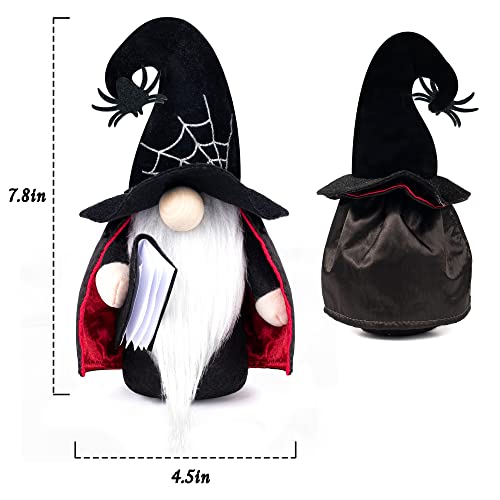 - Adorable Design - Handcrafted. The Gnome features a long plush white beard and a wood nose. The black witch hat and cloak add a festive atmosphere. The size is about 7.8 inches tall from hat top to bottom, perfect addition to the Halloween collection.