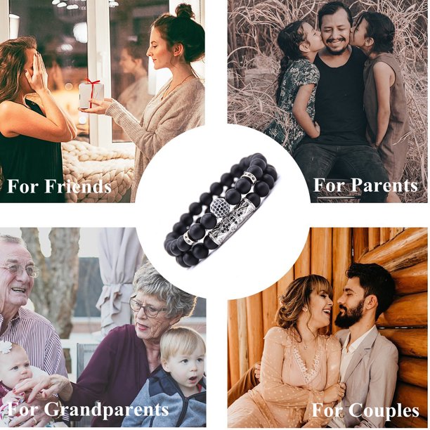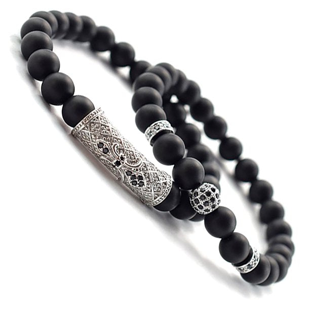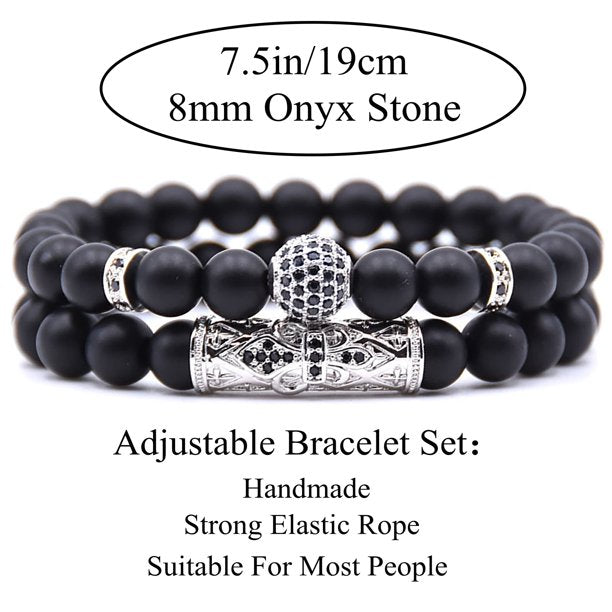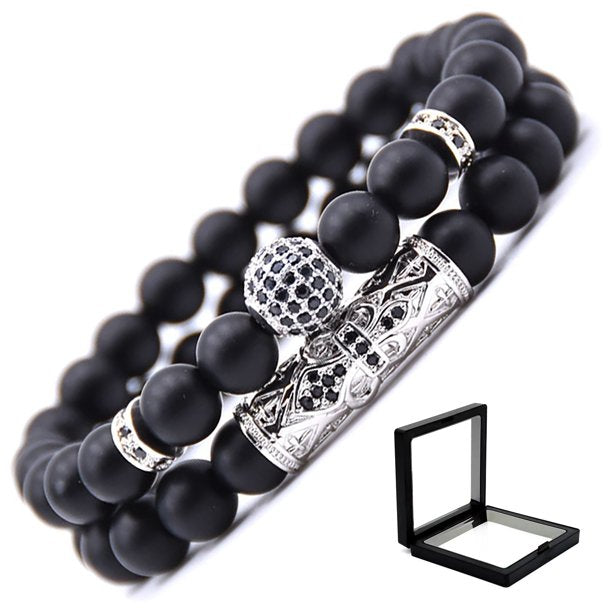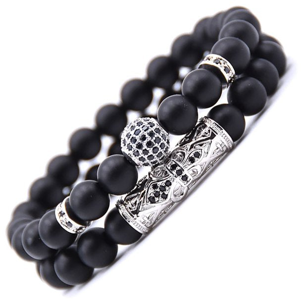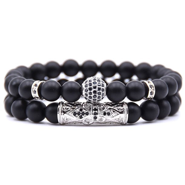 2 Pack Matte Beads Silver Unisex Obsibian Bracelet