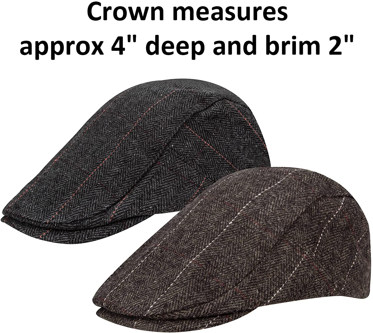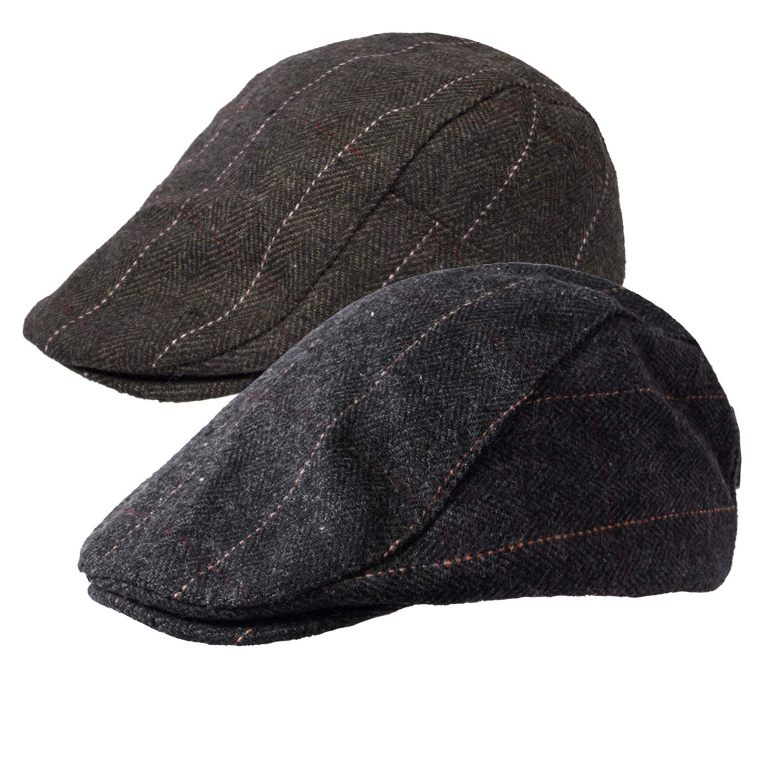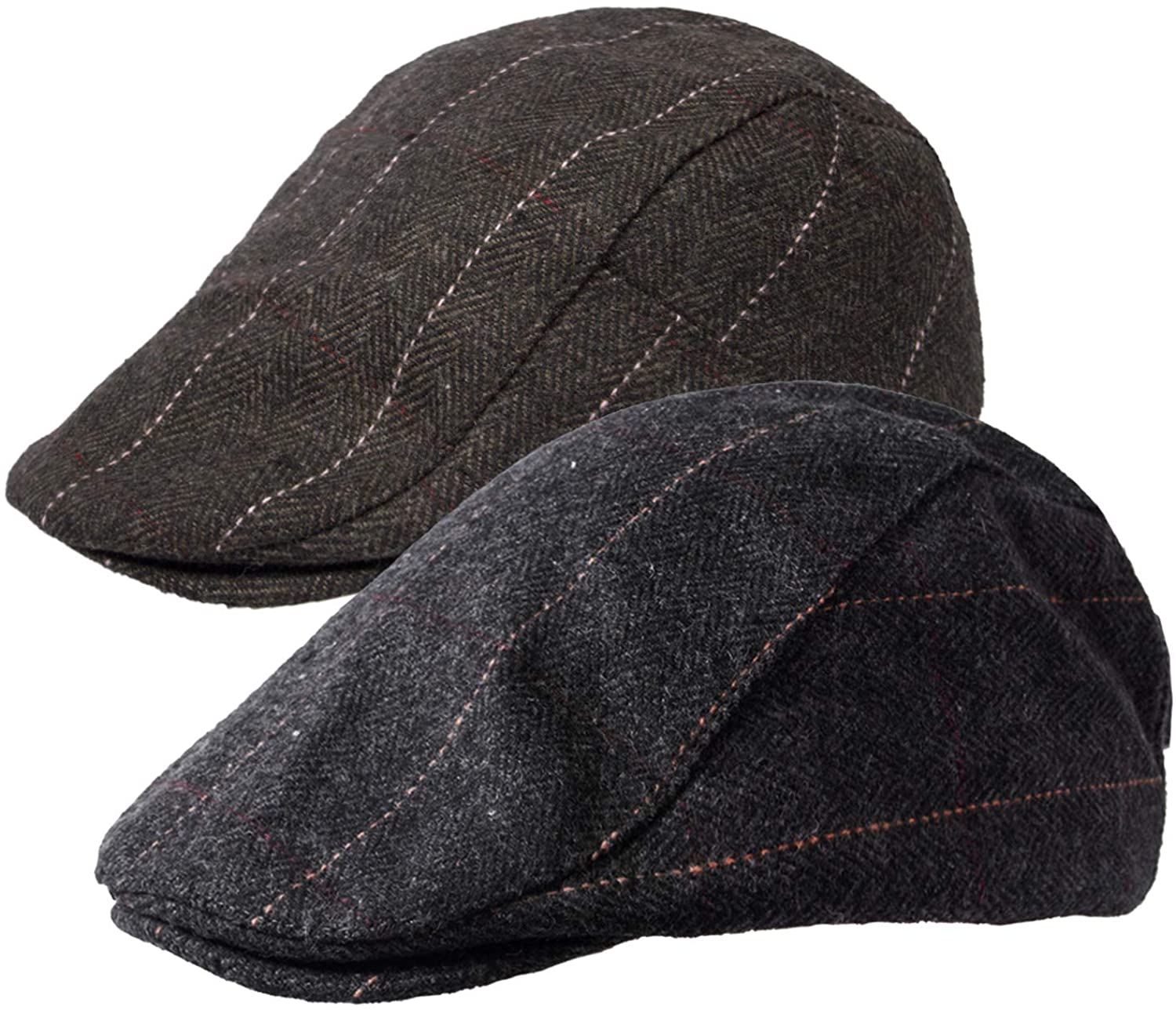 2 Pack Newsboy Gatsby Hats for Men Classic Herringbone Tweed Wool Blend