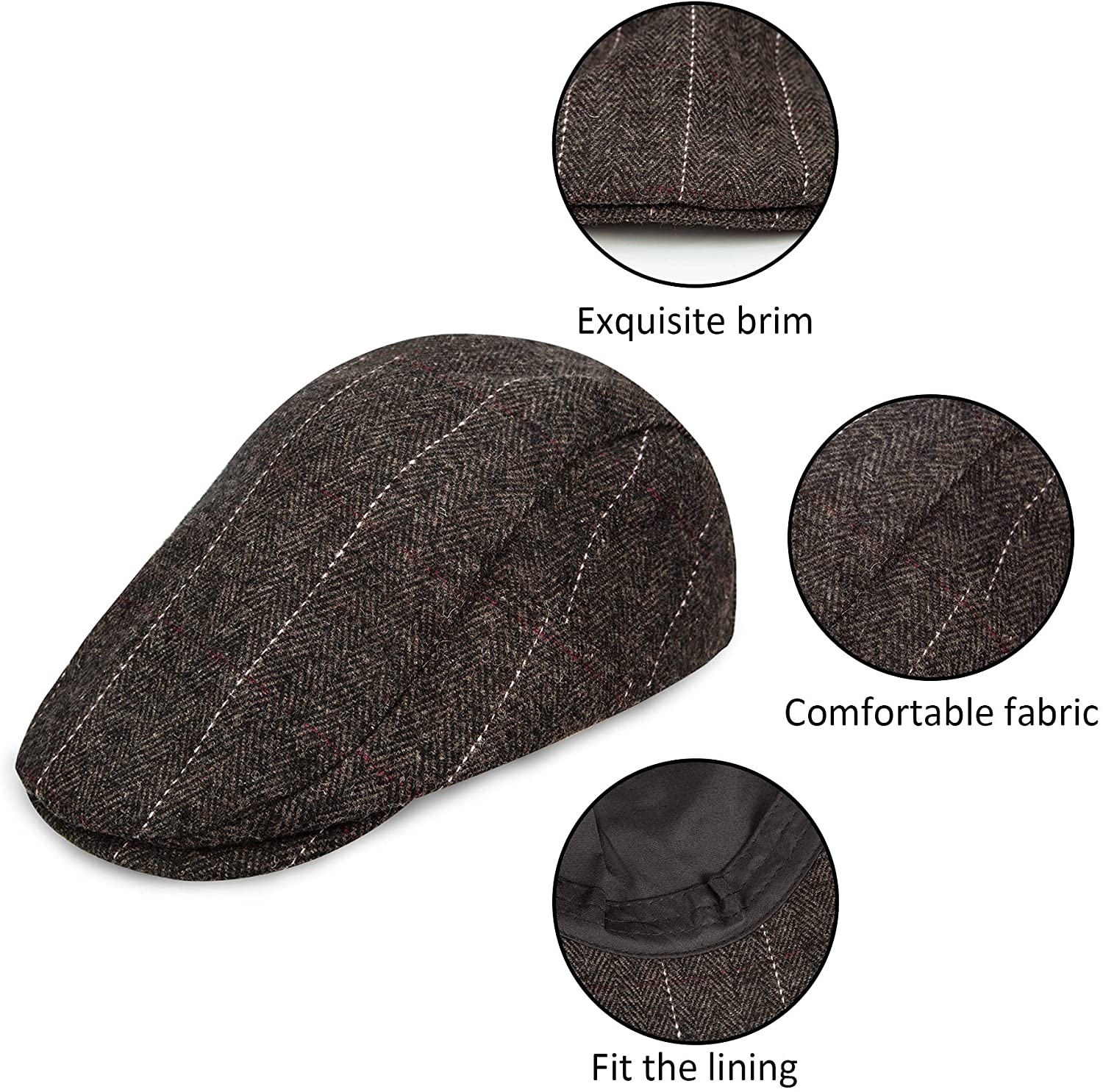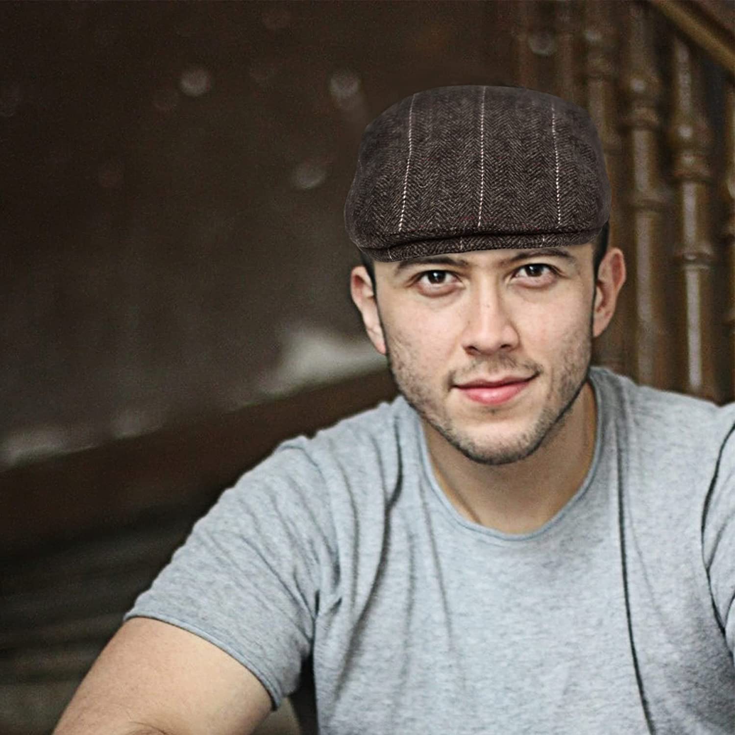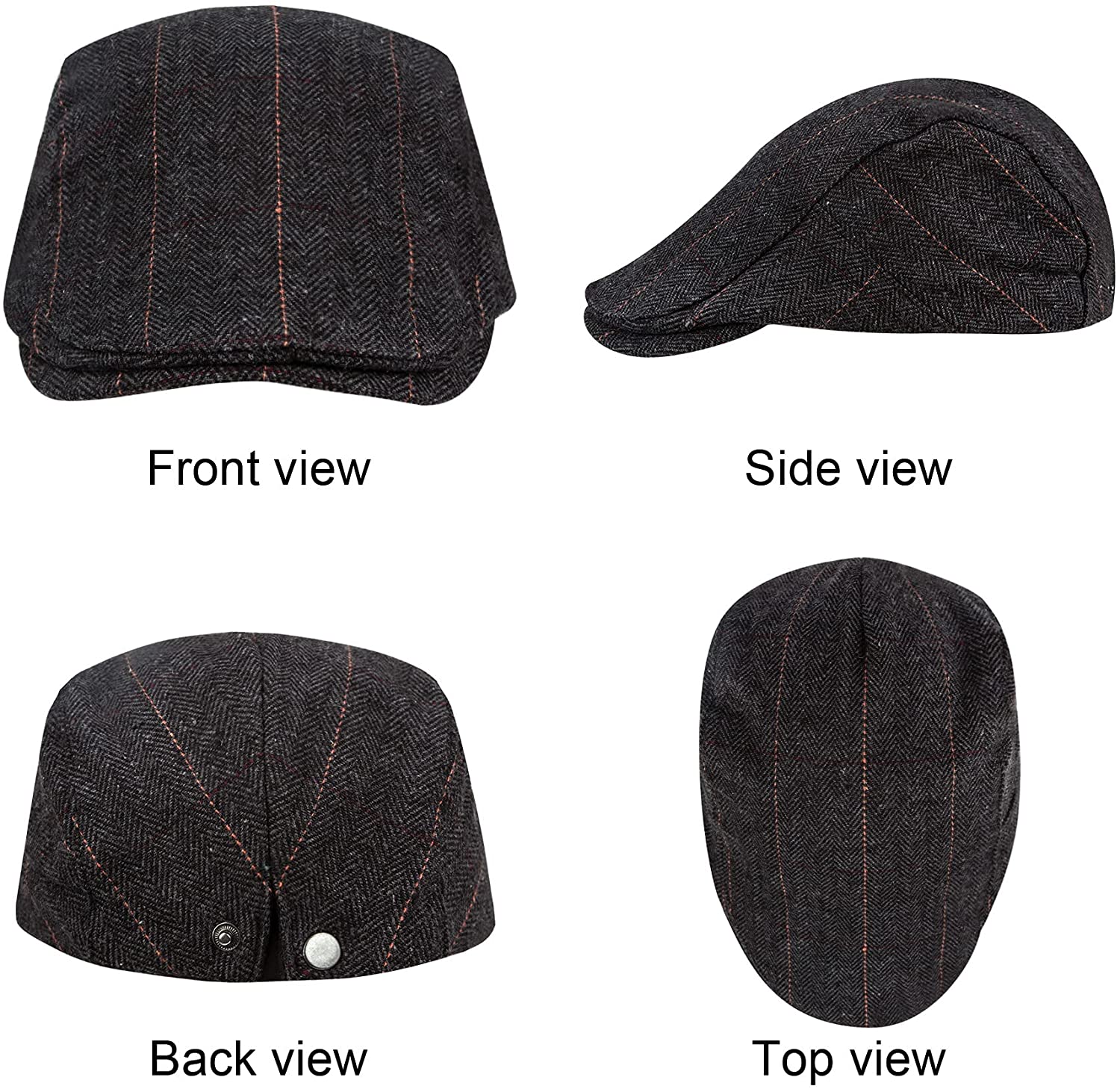 2 Pack Newsboy Gatsby Hats for Men Classic Herringbone Tweed Wool Blend