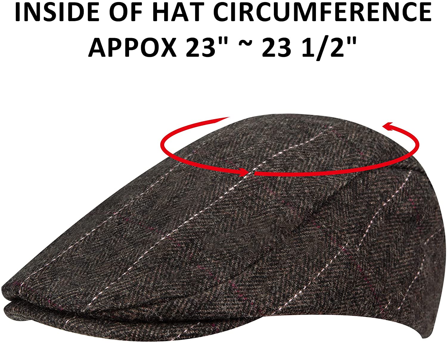 Product size: This newsboy cap is suitable for most size. Inside of hat circumference approx 23"-23 1/2", measurement is made around the inside of hat, Crown measures approx 4" deep and brim 2".