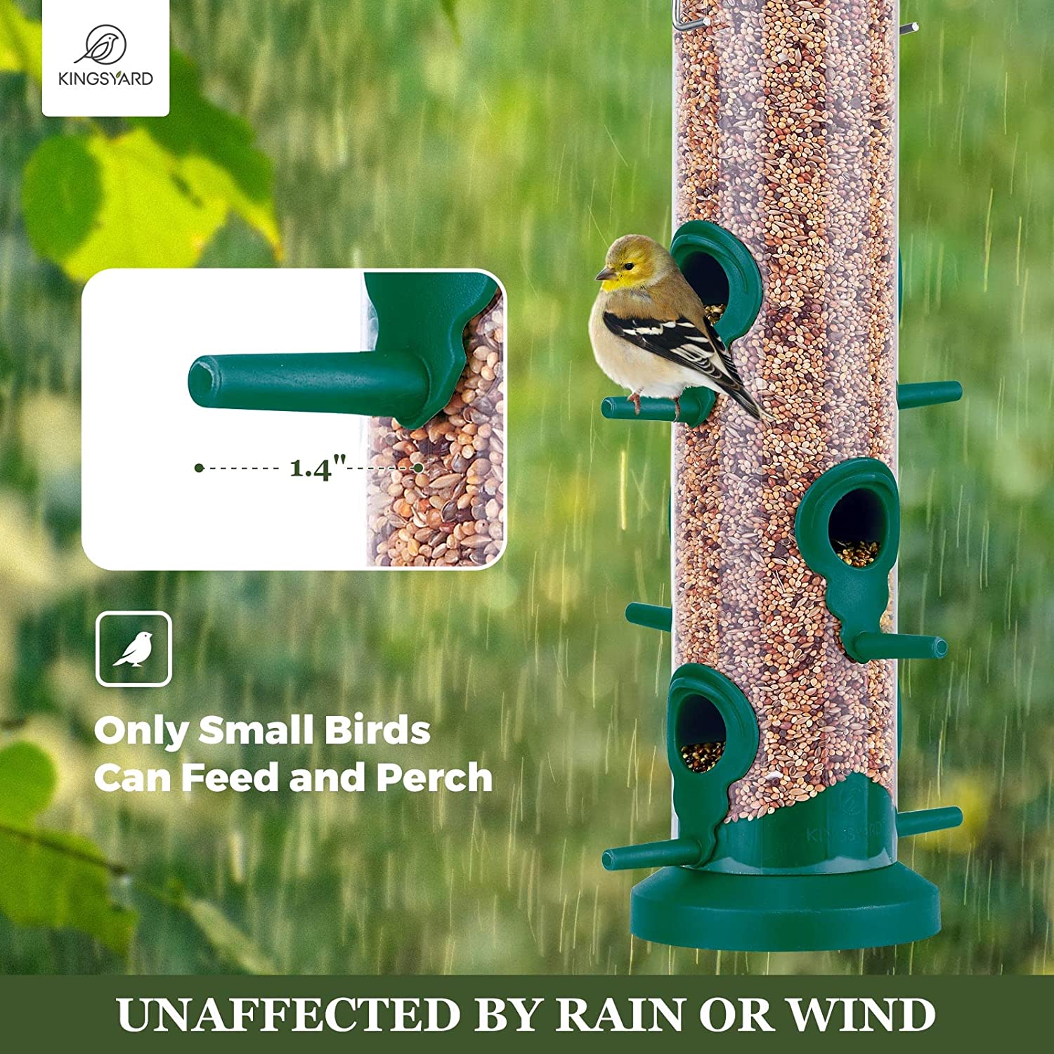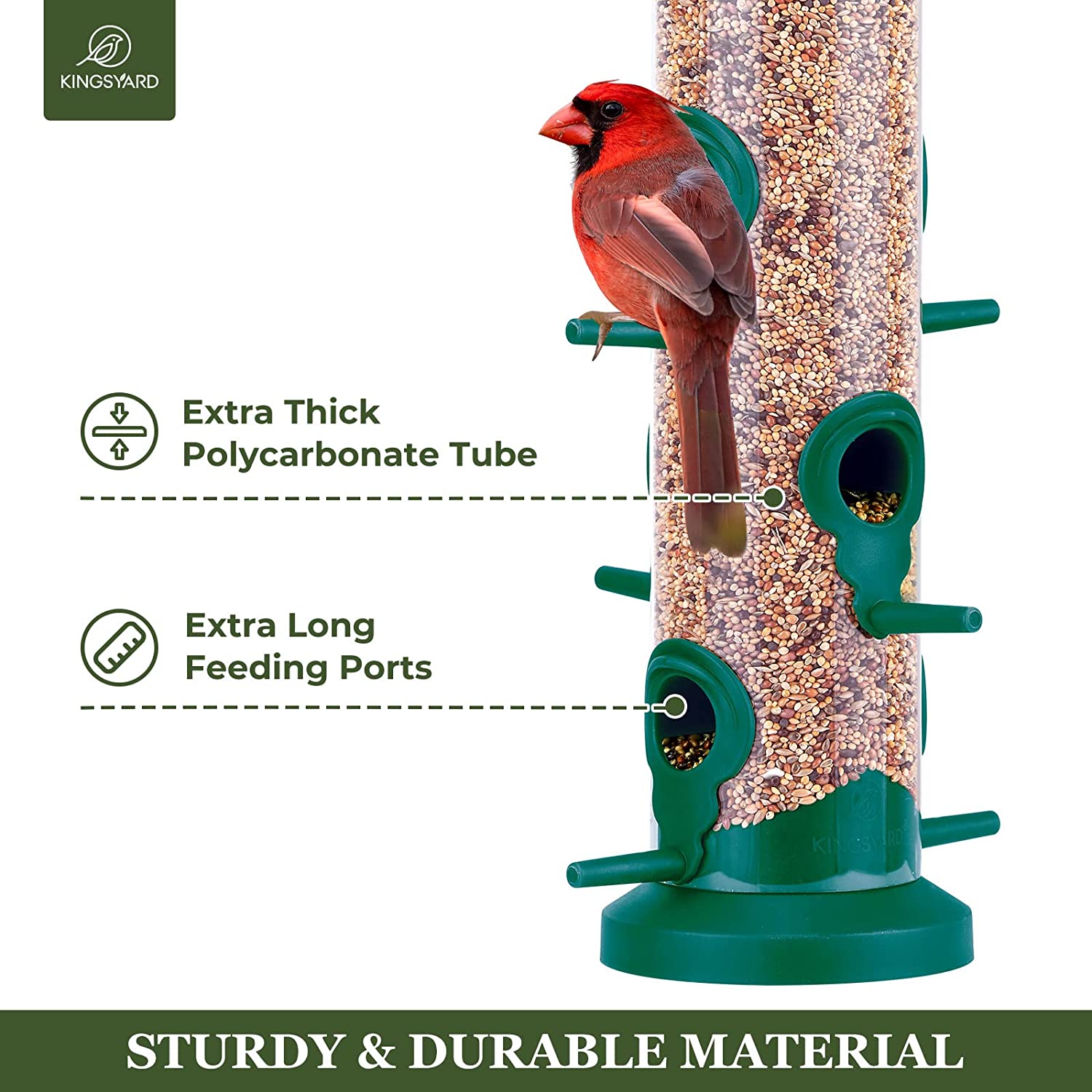- 【DURABLE DESIGN】Made to withstand outdoor elements, the classic tube feeder is great for attracting wild birds like finch, cardinal, chickadee, titmice, sparrow, nuthatch, goldfinch and more! Hang in your yard or outside your kitchen window for pleasant bird watching.