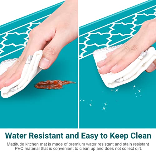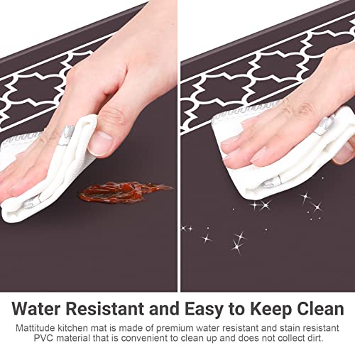 - [Premium Materials] Mattitude kitchen floor mat are manufactured from superior pvc materials that is phathalate-free, latex-free, odor-free, and eco-friendly. The waterproof surface and strong durable material help keep the shape of the mat,even with extended and heavy use.