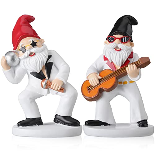 - Cute and Attractive Design: each rocker gnome has a long plush white beard and wears a pair of sunglasses, holding a guitar or a disco ball and microphone in hands, a realistic image, proper for dressing up your Christmas, party