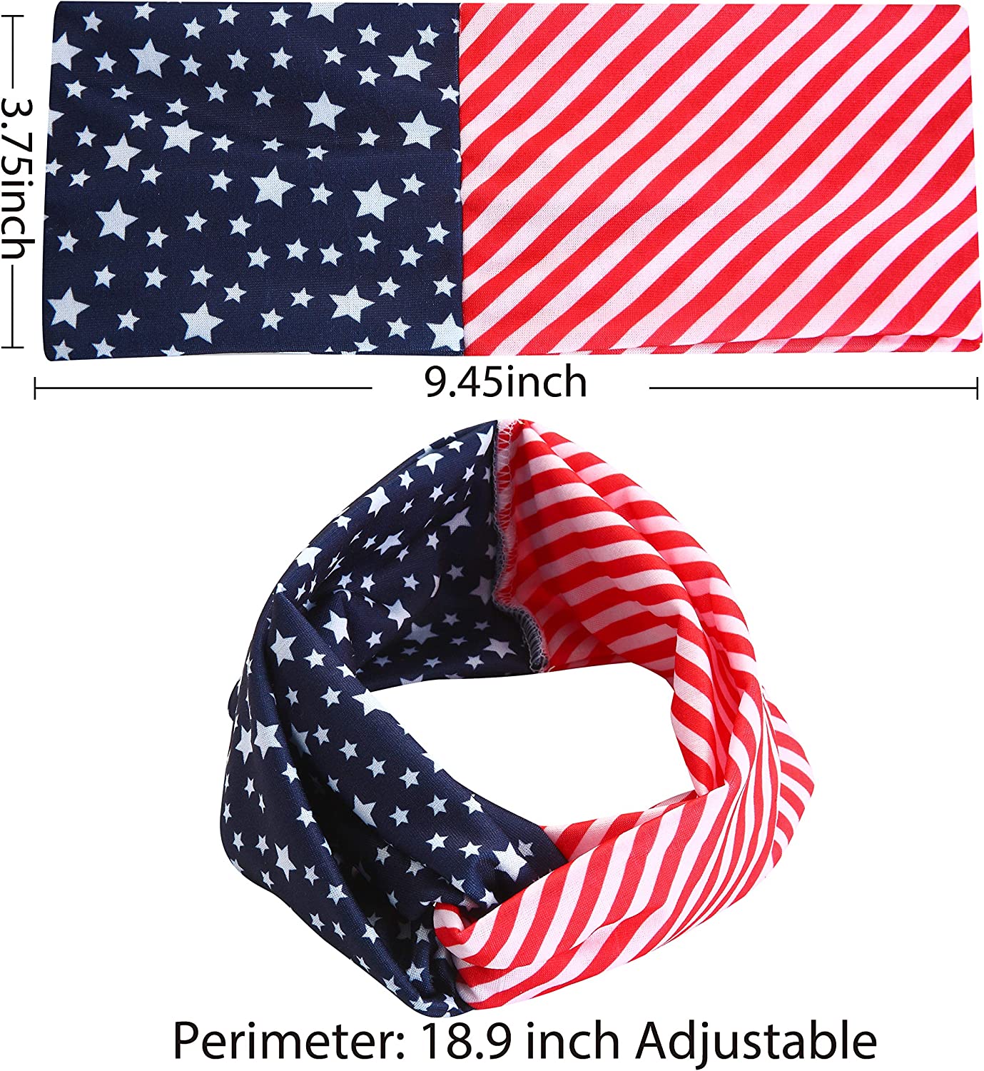 - UNIQUE DESIGN & EASY TO USE. Show off American pride with our flag headband and flower headband! They're also great for other patriotic holidays and events; hand them out as patriotic party favors in goody bags or swag bags, or use them as parade tosses from your red, white and blue float during the Fourth of July parade!