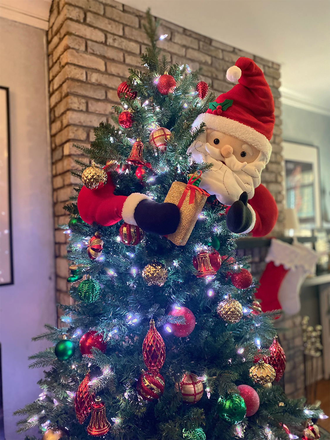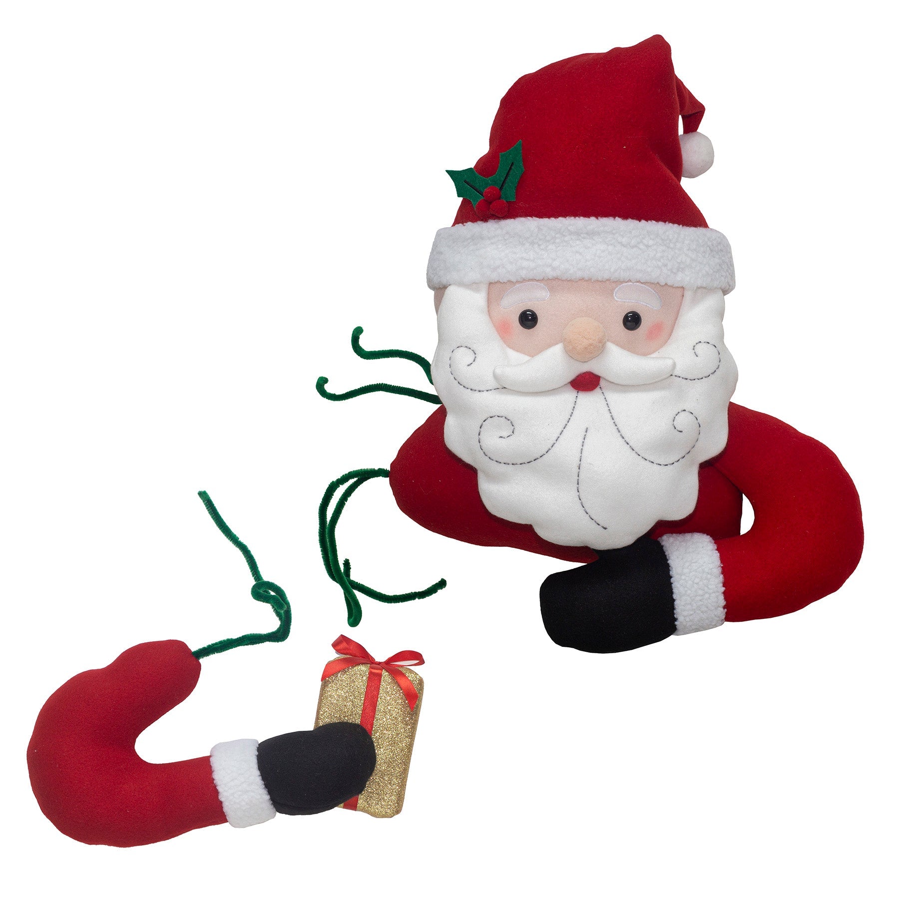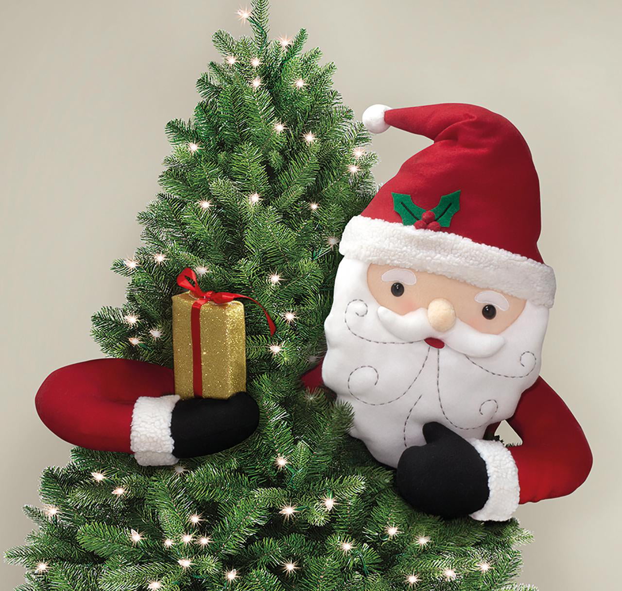 Add an extra warm hug to your holiday decorations this year with the Holiday Time 2-Piece Santa Tree Hugger Decorating Kit. Designed to look like Santa is hugging your Christmas tree, this unique, must-have accessory is a fun and festive way to add character and charm to your decorations. The 2-piece, 3-dimensional, stuffed fabric design with generous, long ties makes it easy to position Santa and the wired arm holding the gift in the best place to create the perfect look! The Santa tree hugger is constructed in soft fleece with lovely Sherpa trim and embroidered accents. Measuring 25 inches tall, this whimsical tree hugger is the ideal option for filling any holes in natural tree branches or for simply bringing life to your perfectly placed ornaments! In addition to tree decorating, you can easily add a touch of whimsy by placing the tree hugger on your holiday wreath! Durably made to be used year after year, Holiday Time's 2-Piece Santa Tree Hugger Decorating Kit is certain to compliment any Christmas décor scheme, creating an exciting and cheerful focal point to your holiday décor! Holiday Time 2-Piece Santa Tree Hugger Decorating Kit: *- 2-piece design makes it easy to perfectly position Santa and his wired arm holding the wrapped gift *- Fills in any holes in natural tree branches *- Wire ties on the back of both pieces secure easily to the tree trunk *- Position Santa's wired hat in any direction you want by easily bending in place *- For use on trees and wreaths *- Constructed in soft fleece, Sherpa trim, and embroidered accents *- Decoration only. Not a toy. *- Do not wash. Do not dry clean. Spot clean only with mild detergent.