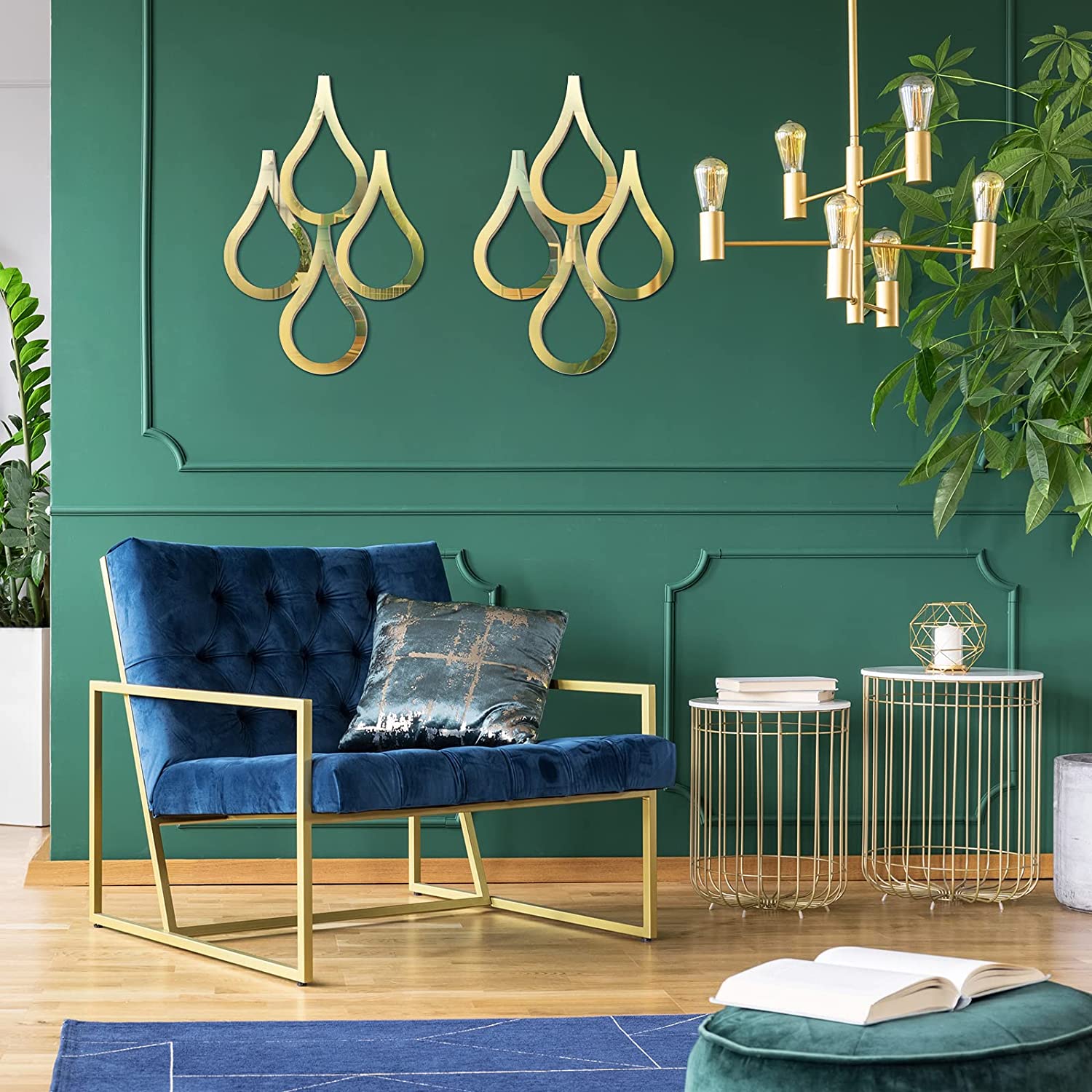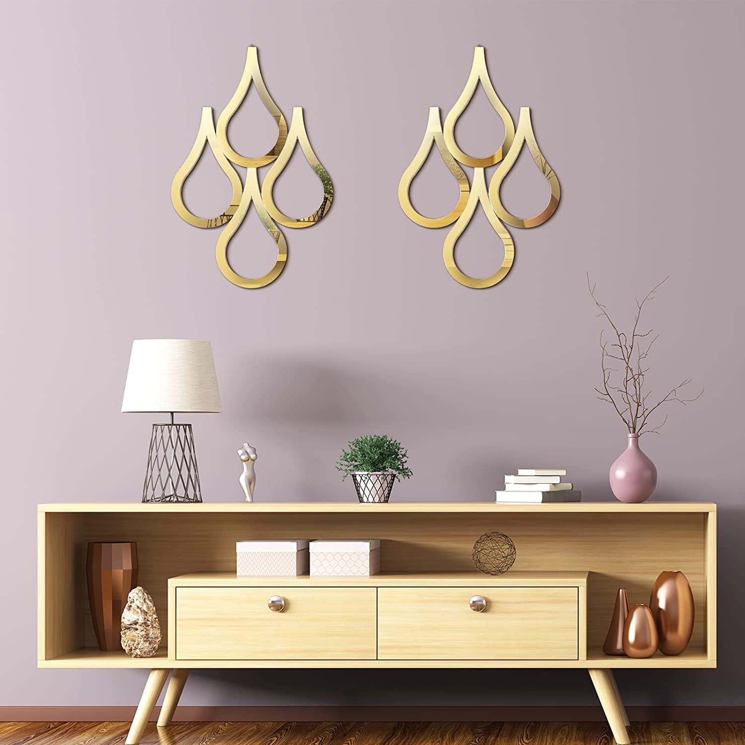 2 Pieces Teardrop Wall Mirror Hanging Decoration 15.7 x 11 Inch (Gold)