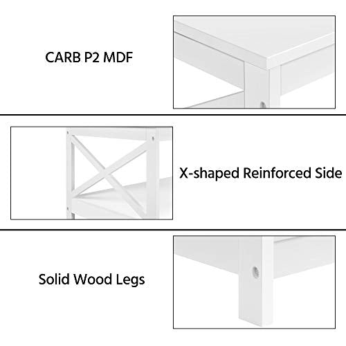 Cost-effective coffee table is made of high quality MDF and pine material, which ensures a long life span. This coffee table features a storage shelf, which offers ample storage space to keep items orderly and organized. This vintage furniture table is rustic and simplistic, which matches your home decor and highlight your taste. Its proper size makes it perfect for living room, study and kitchen as console table, sofa table, or storage table.