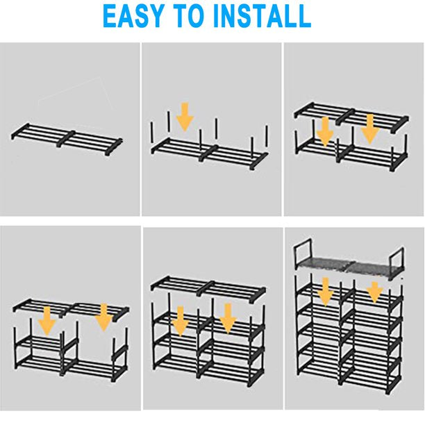 - Sturdy MetalConsists of thickened metal tubes, waterproof PP tiers, and strengthened plastic connectors that make closet shoe rack organizer sturdy enough. Short design of shelf pipes are hard to bend even put larger and heavy objects, that makes this rack sturdier, stabler and longer lifetime.