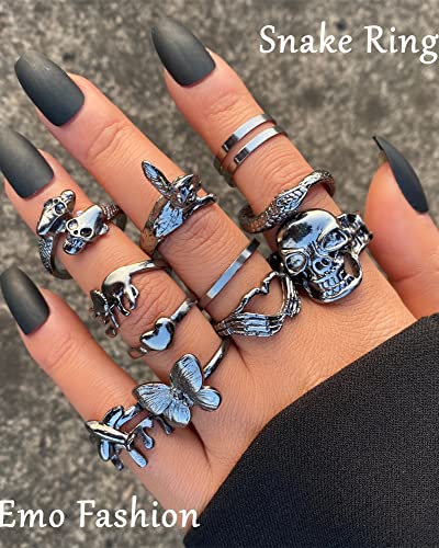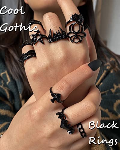 - 🛍️BLACK PUNK RINGS - 20 pcs pack of punk black rings for women,in one pack, you’ll get snake ring,claw ring,butterfly ring,heart ring,spider ring,leaf ring,star ring ,chunky ring etc, much wider variety caters for different outfits and occasions, be unique every day