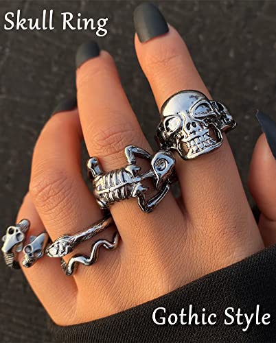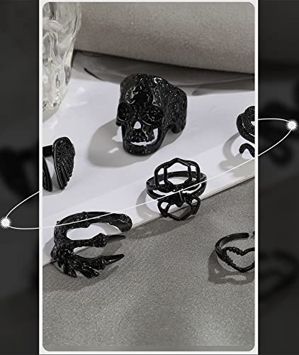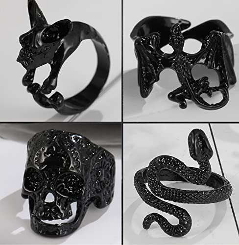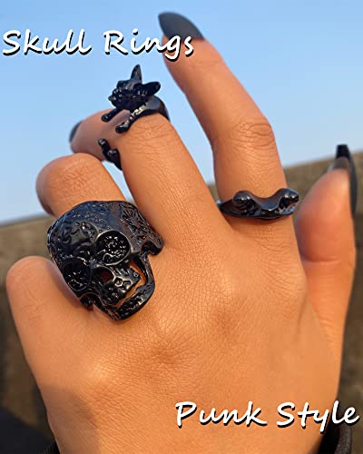 - 🛍️GOTHIC RINGS MATERIAL - Made with high quality alloy, black plated, lead and nickel free,no harm to your body. Use 1 UV plating process, not only environmentally friendly, but also make the surface of the skull ring smooth and durable, no worrying about scratching your finger