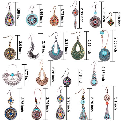 - Package include: 20 pairs bohemain earrings in different style as the picture show, enough quantity and various of styles bohemian earrings for women to match with different clothes