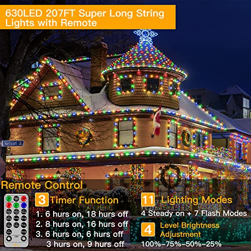 207FT 630LED 11 Modes Warm White to Multicolor Christmas Lights