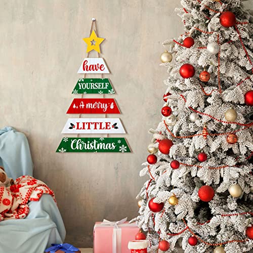 - Christmas Atmosphere: you will receive 1 piece of Christmas wall decor consisting 5 wood plaques and 1 star topper, which are held together by a rope, the wall decor is are designed with many classic Christmas elements, including snowflakes, Christmas tree, snowman, holly leaves and red berries, etc., and warmhearted phrases on the Christmas sign will bring hope, inspiration and encouragement, nicely matching with your Christmas home and party decorations, adding a touch of Christmas atmosphere