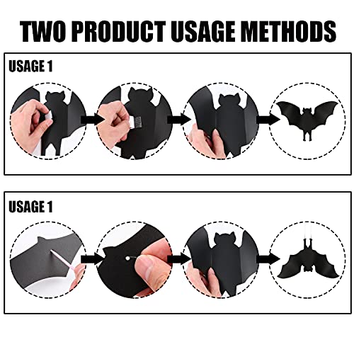 - Easy to Use: You can choose two ways to use these scary bat stickers. Usage 1:Poke the holes reserved for bats with the plastic needles in the package;Thread the holes through with elastic thread;Hang the ornamental bats from the ceiling. Usage 2:Attach the adhesive tape to the plastic bats;Remove the film on the back of the tape; Apply these Halloween bats to the wall, window and other places where it can be attached.