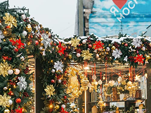 - ♔FABULOUS AND DELICATE CHRISTMAS FLOWERS-Floweroyal Christmas poinsettia flowers are made of high quality silk and plastic. Using advanced dyeing techniques, 3 popular colors for you to choose from, not easy to fade. The charming little glitter adorns the flowers, beautiful and stylish. As a Christmas ornament, it can be reused for a long time.