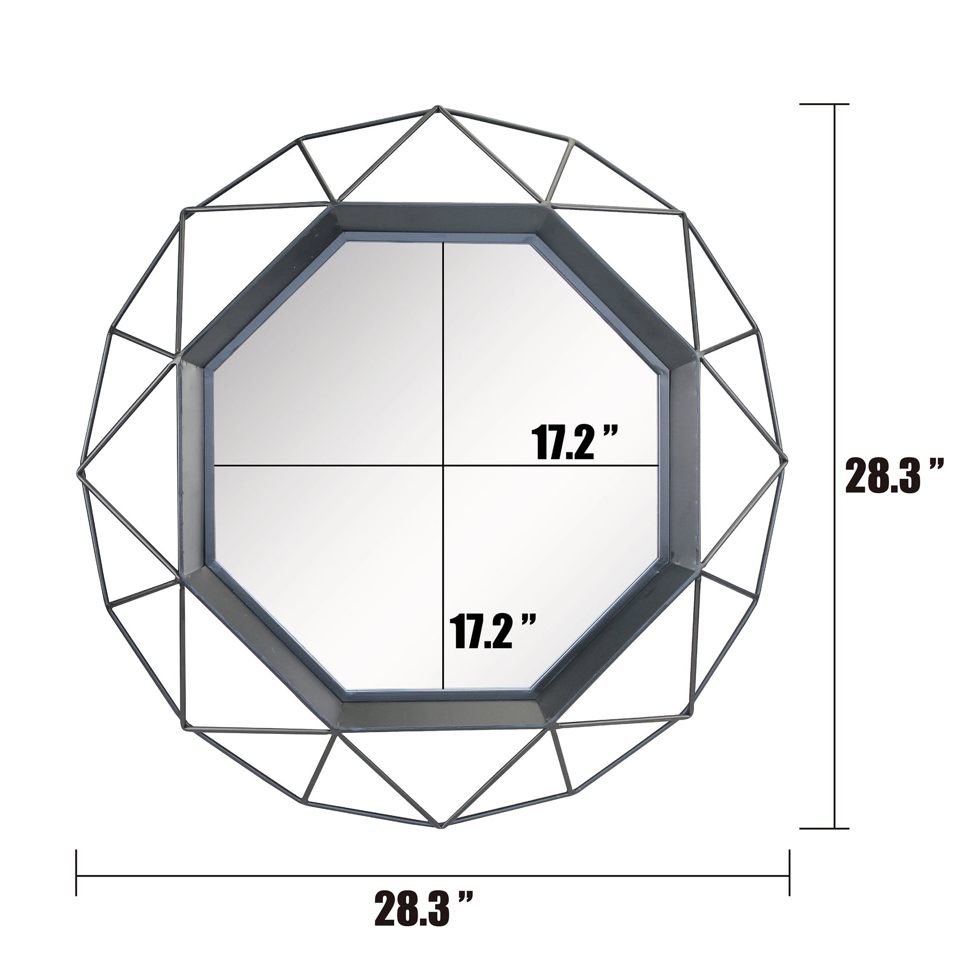 Instantly add an interesting focal point to any room in your home with the 28.3" black modern geometric metal wall mirror. This unique mirror features a geometric design accented with a black painted finish. Stonebriar's decorative mirror measures 28.3" in diameter with the frame. The glass mirror alone measures 17.3" in diameter. It is the perfect size to use as a vanity mirror for the bathroom or an accent mirror on any wall in your home. Mirror comes with attached keyhole hangers for easy installation right out of the box. Stonebriar 28.3" Black Modern Geometric Metal Wall Mirror: *- Measures 28.3"H x 28.3"W x 2.4"D *- Glass mirror alone 17.3" x 17.3" *- Geometric metal wire frame *- Black painted finish *- Vertical orientation *- Wall mounted display *- Comes with attached keyhole hangers